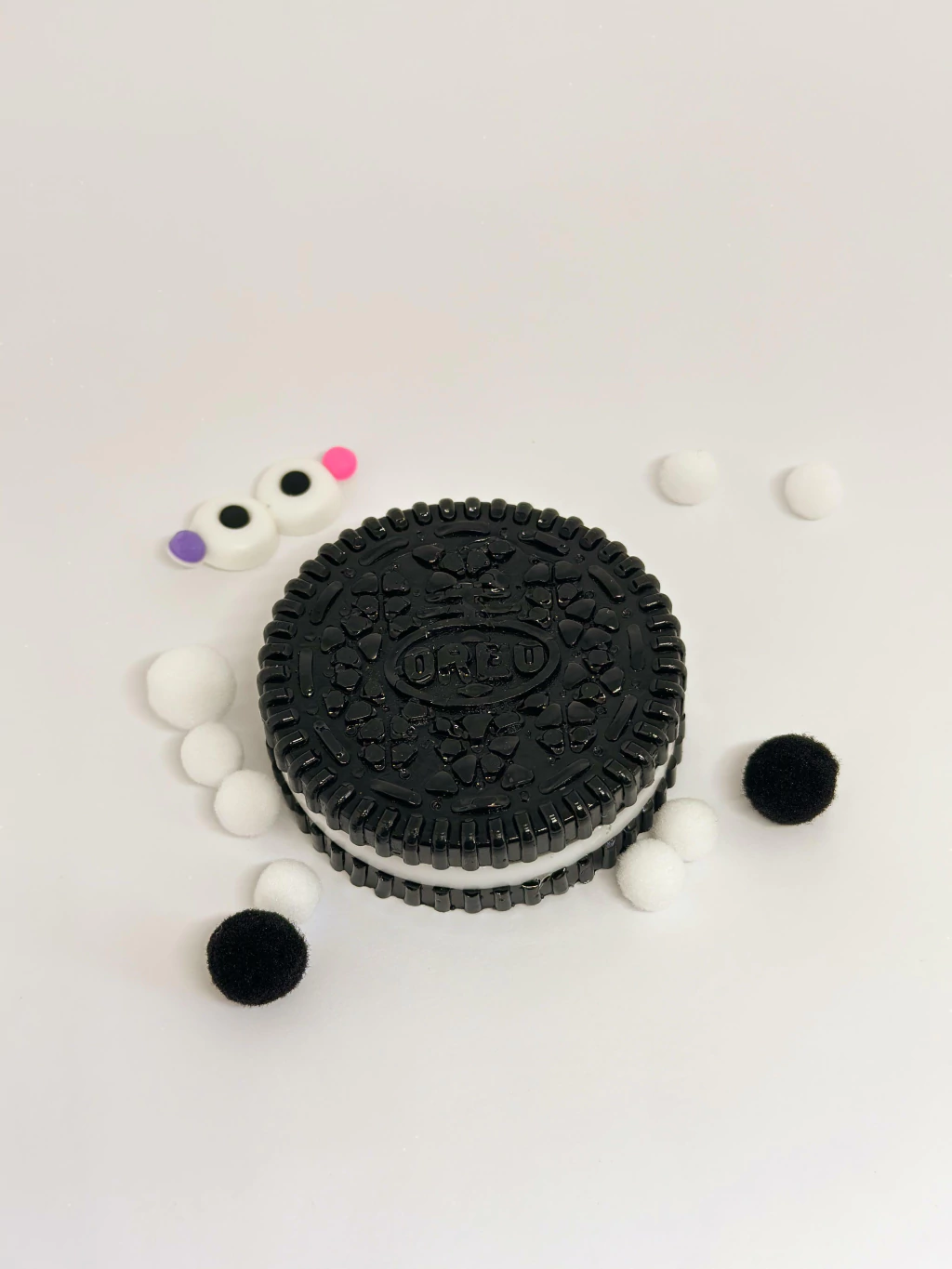 Conheça o irresistível Taba Squishy de Oreo Fofo! Este squishy encantador não só traz a aparência do famoso biscoito Oreo, como também conta com uma textura deliciosa e super macia.